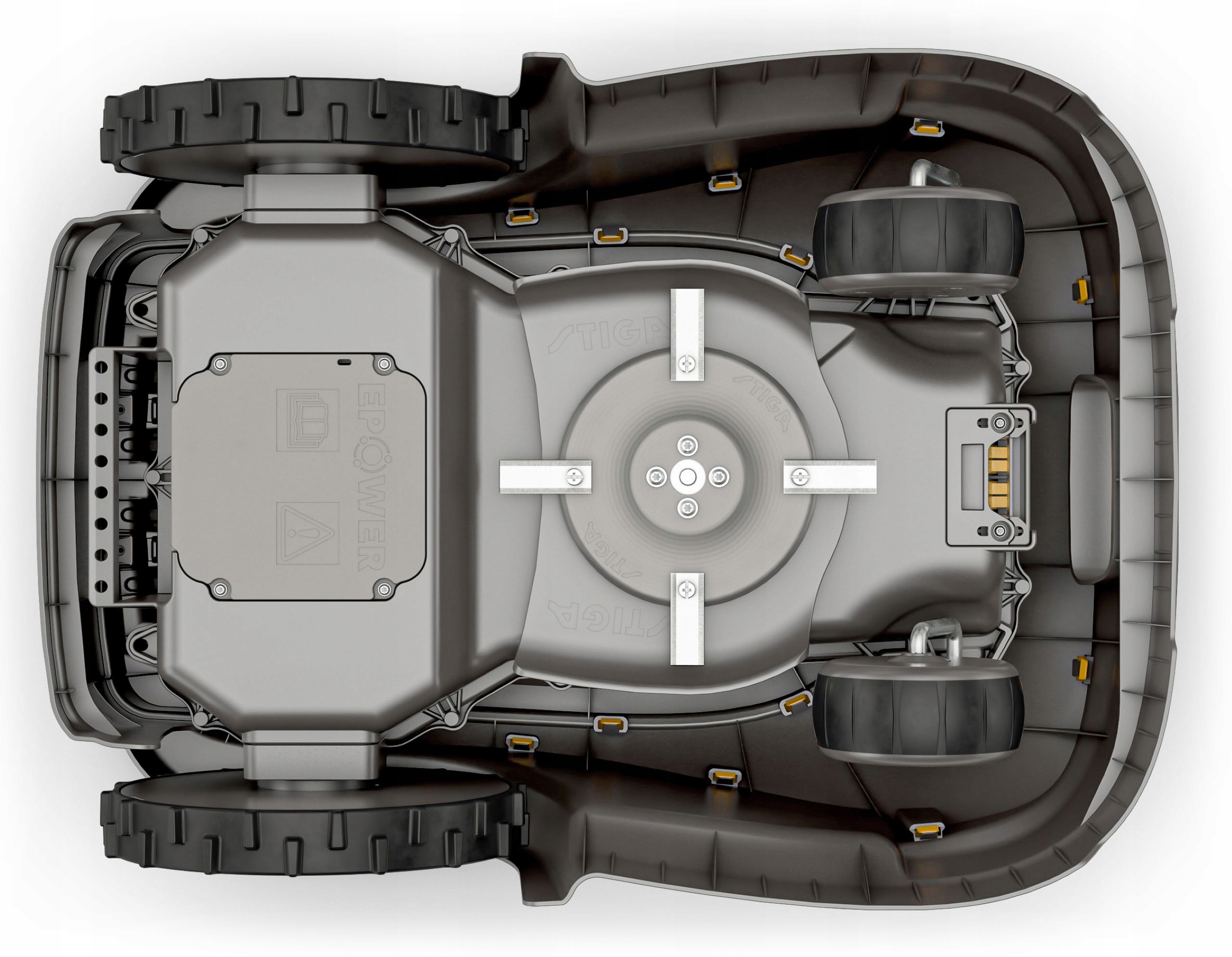 Następnie, gdy praca STIG-a jest skończona, wystarczy podnieść górną pokrywę i umyć ją wężem ogrodowym – dzięki ochronie IPX5, zawsze możesz utrzymać Stiga w dobrej kondycji i czystości.